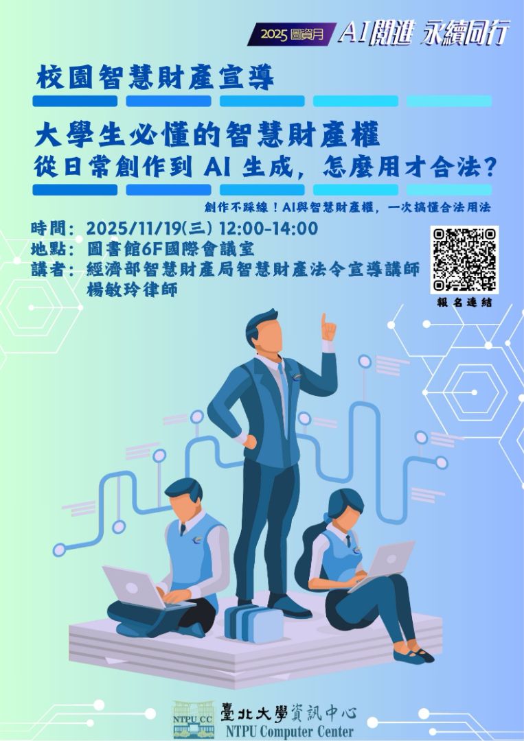 【圖資月】校園智慧財產宣導: 《大學生必懂的智慧財產權-從日常創作到 AI 生成,怎麼用才合法?》