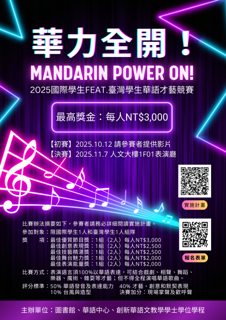 【高教深耕1-2.3】「華力全開!Mandarin Power ON!」2025國際學生feat.臺灣學生華語才藝競賽