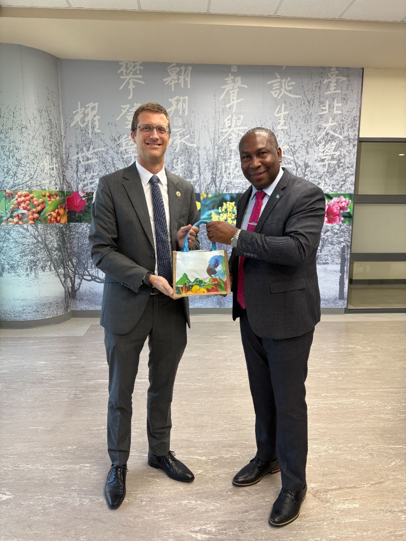 聖露西亞駐華大使館於 2023 年在台灣設立,肩負推動外交、教育與經貿合作的使命。Lewis 大使現任聖露西亞駐華大使,曾任教育部長,長期致力於公共政策與教育改革。他此次來訪,特別強調希望透過教育合作深化兩國友誼,並肯定臺北大學在推動國際化上的努力與成果。