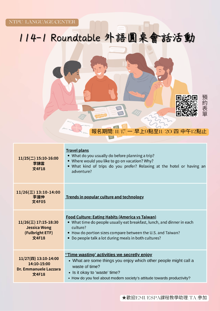 五、預約結果將於11/21(五)公告於語言中心網站、Facebook專頁或IG。
