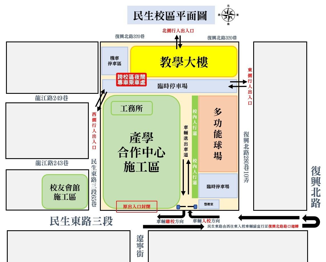 為回應師生建議、提供便利交通服務,並評估後續常態化可行性,學校將於 114 年 12 月試辦週五跨校區夜間專車,增進兩校區間課後通勤便利。