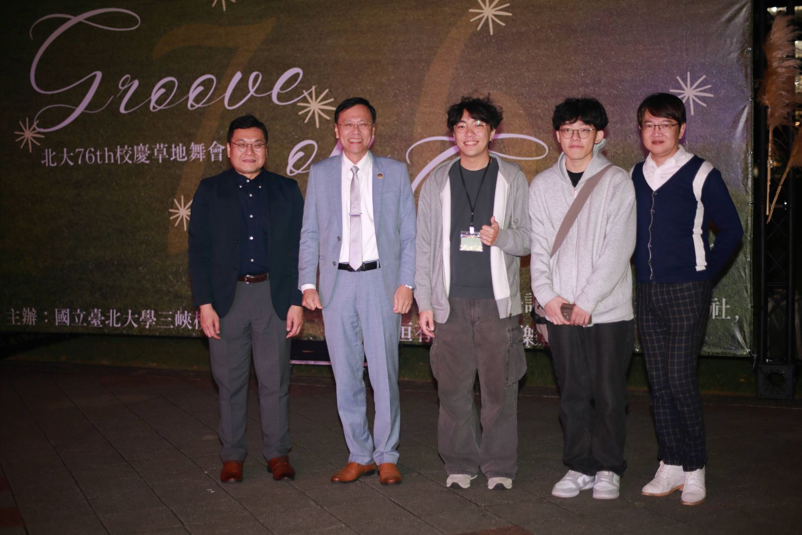 林道通校長、胡中宜學務長、林玉山簡任秘書亦親臨現場,與同學們共享這場精彩熱鬧的綠地派對,展現北大校園高度重視學生生活、鼓勵多元參與的精神。
