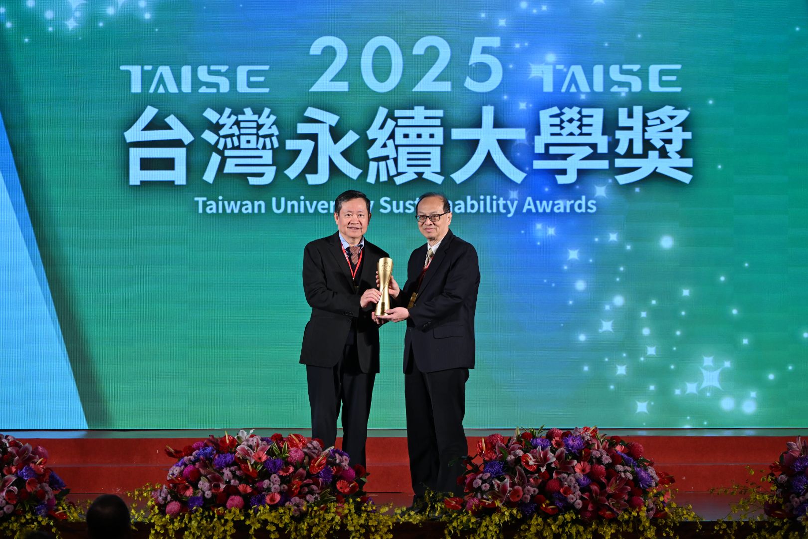 由台灣永續能源研究基金會(TAISE)主辦的「2025台灣永續大學獎」頒獎典禮,11月26日在台北圓山大飯店隆重舉行,匯集產官學研與公民社會代表齊聚一堂,展現我國高等教育推動永續發展的豐碩成果。本校在本屆評比中表現卓越,一舉獲得「台灣永續楷模大學」、「永續報告白金級」、「永續發展教育領袖獎」三項大獎,並由高齡與社區研究中心曾敏傑主任榮獲「永續傑出人物獎」,成為本屆獲獎項目數最多(4項)、同時奪下最多第一名(3項)的大學,充分展現本校在永續大學版圖中的關鍵領航地位。