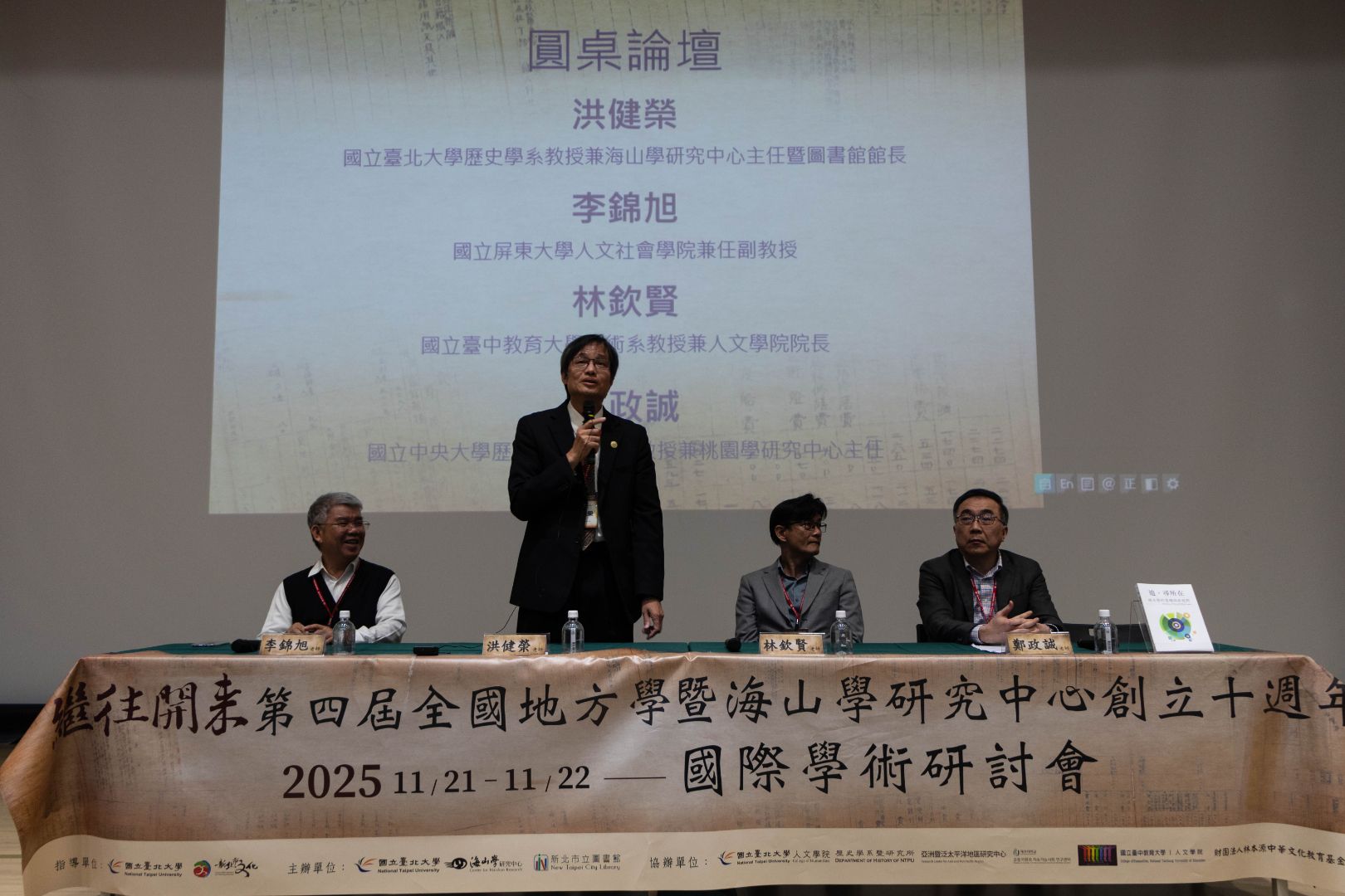 圓桌論壇時,除了回顧兩天精彩的發表,展望未來,亦提出更多關於跨國及跨領域、跨單位合作的可能性。國立屏東大學人文社會學院李錦旭副教授,同時也是全國地方學研討會首屆主辦單位,特別肯定本次會議主題聚焦、場次安排縝密,清晰勾勒出地方學研究的多元面向,有助於未來持續耕耘。海山學研究中心洪健榮主任表示,本次研討會展現了學界對地方學的高度關注,期許未來無論是地方學研究或《臺北州檔案》的進一步解讀,都能讓臺灣地方學更加蓬勃,讓海山不僅是海山地區的海山,更是臺灣的海山,乃至世界的海山。
