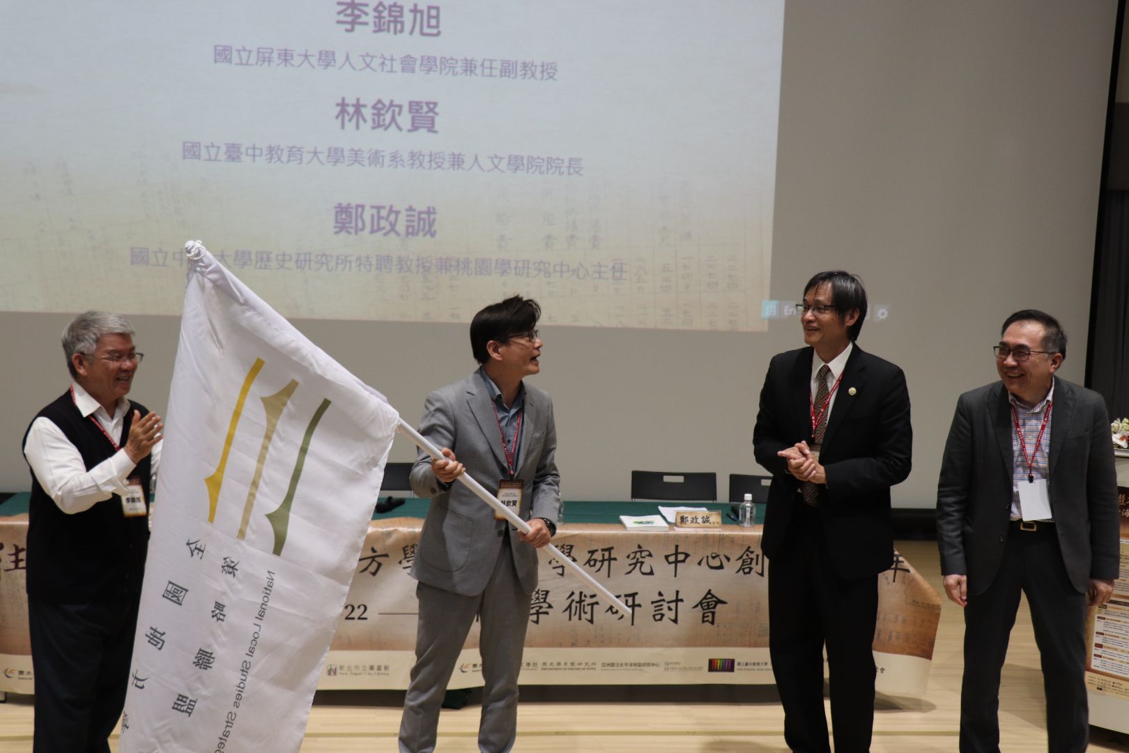 會議最後舉行全國地方學研討會論文集、海報及會旗的交接儀式,由第三屆主辦單位國立中央大學代表鄭政誠教授、第四屆主辦單位國立臺北大學代表洪健榮主任及第五屆主辦單位國立臺中教育大學代表林欽賢院長共同完成。洪健榮主任也預告明年大會主題為「《臺北州檔案》與近代東亞地方治理」,屆時將邀請更多海內外學者蒞臨交流,期盼激盪新穎的學術對話,為地方學與跨域研究開創更多可能。在最後的大合照中,兩日會議圓滿落幕。