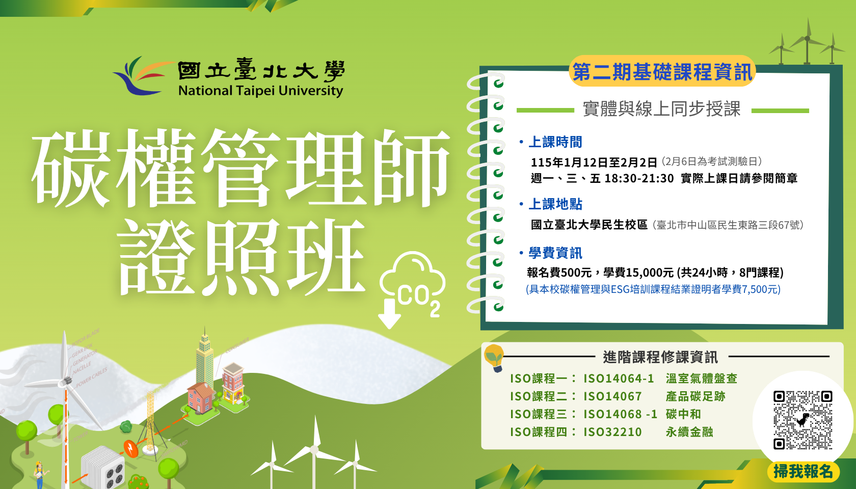 國立臺北大學第二期《碳權管理師》證照班報名開跑囉!