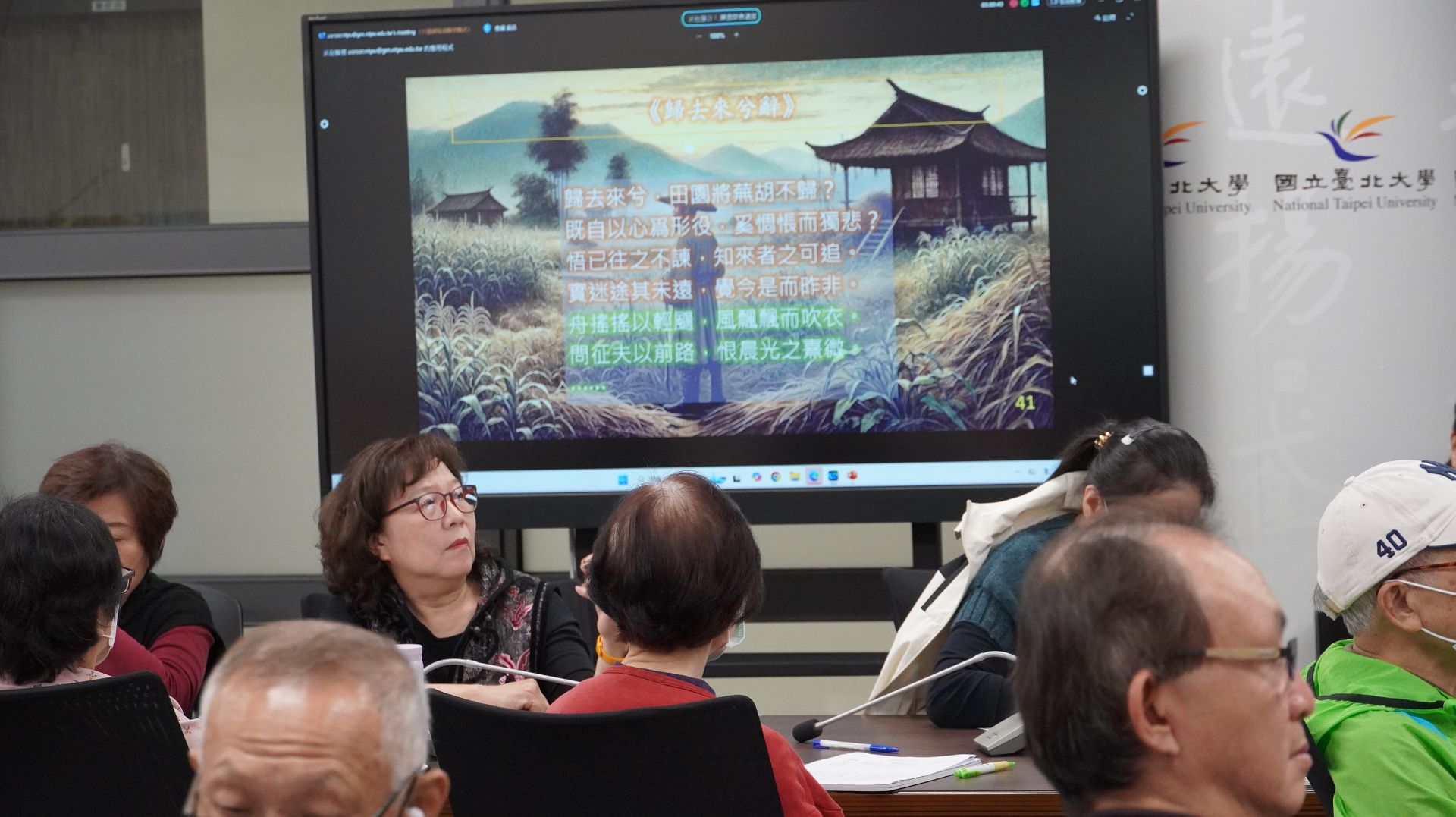 在課程總結與提問環節,學員們熱烈表達了希望多聽四大名著的願望。此外,對於《西廂記》等戲曲文學,學員也表示興趣,期待增加新的刺激,以提升銀髮族的學習力。學員代表賴素卿也特別感謝老師製作投影片內容豐富,精心尋找圖片與說明,為與高齡者分享而耗費極大心力。她更感謝老師在回美國度假期間仍為大家準備課程,並期待老師能再回台灣與大家分享文史講座。