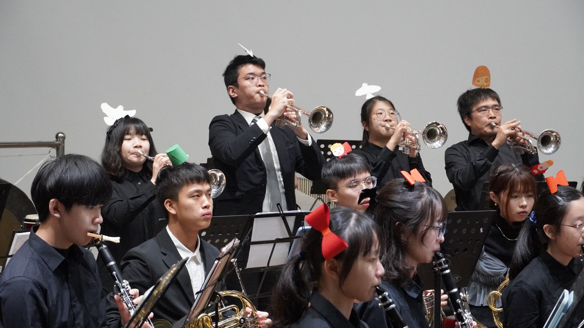 下半場則呼應「音畫」主題,選演多首宮崎駿動畫電影配樂,包含《龍貓》、《魔法公主》、《神隱少女》及《魔女宅急便》等組曲,演出同學們也應景地在頭上帶一些動畫的小卡片,更顯活潑可愛;壓軸曲目則為爵士風格改編的《人生的旋轉木馬》,透過熟悉的旋律,引領觀眾重溫動畫中的經典場景。最後以聖誕組曲作為安可曲,用歡樂的樂曲為北大管樂節落幕,期待明年再度以音樂融合大學與社區。