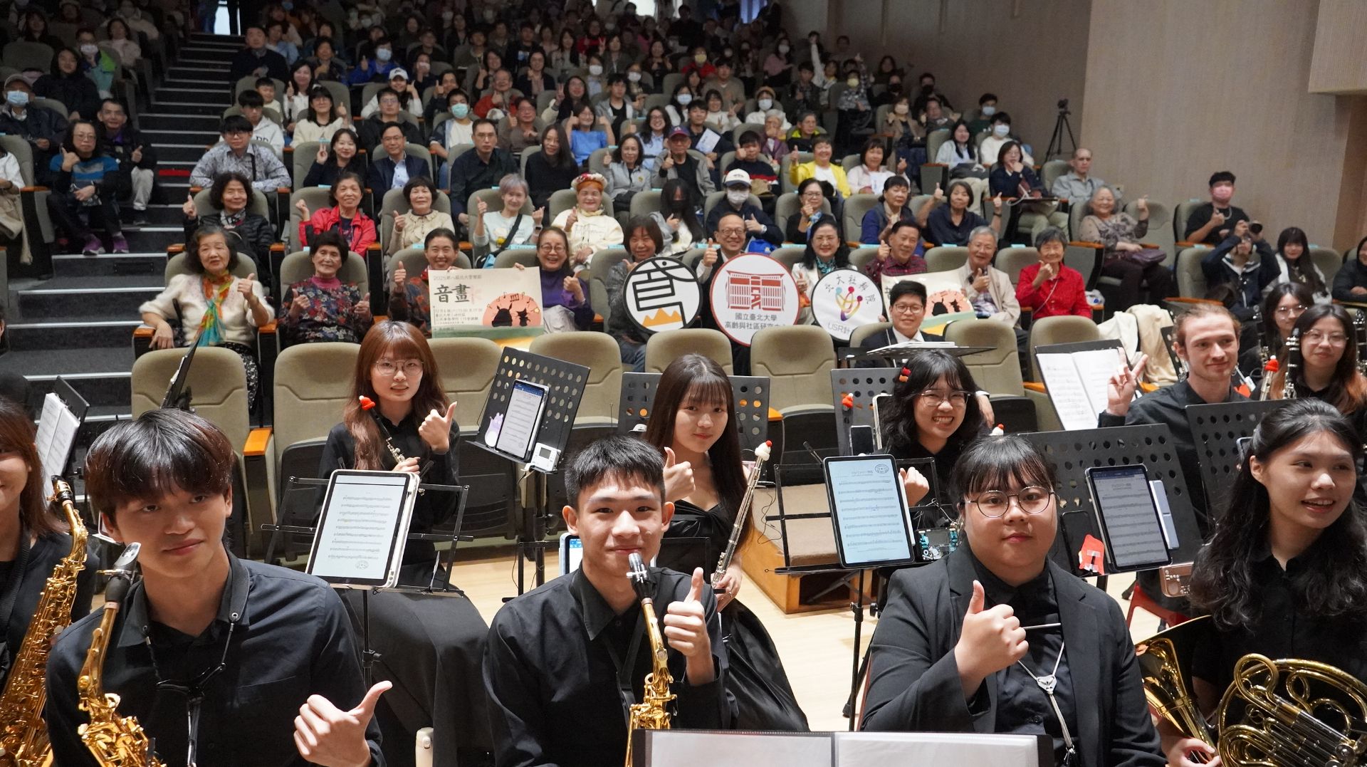 指揮鄒佳宏老師也表示,今年管樂團新生有許多是從小學習管樂,因此增加了一批優質的生力軍,也加入了經濟系林建勳老師吹奏小號,以及德籍學生吹奏長笛;因為管樂團的水準不斷精進,也吸引更多師生加入管樂團,以及獲得社區民眾的喜愛與參與。音樂會中指揮鄒佳宏老師也向觀眾介紹《學老誌》,並感謝社科院USR計畫主持人曾敏傑八年來的支持,帶給學生們持續成長與管樂團進步的機會,並讓管樂團的成果可以用來服務社區。