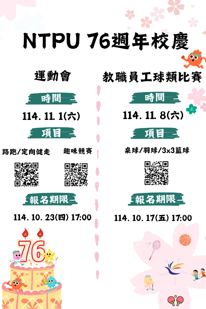 教職員工球類比賽:https://forms.gle/46FH8vdENDeSkVhU6