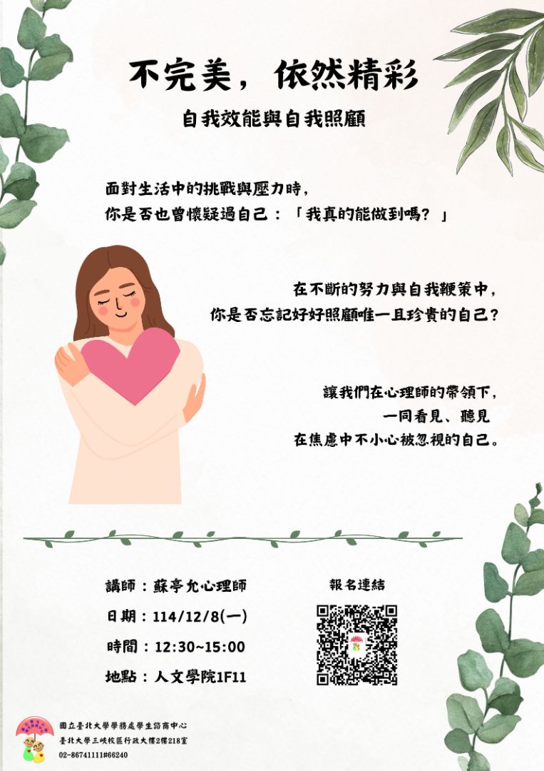 國立臺北大學學生諮商中心 誠摯邀請