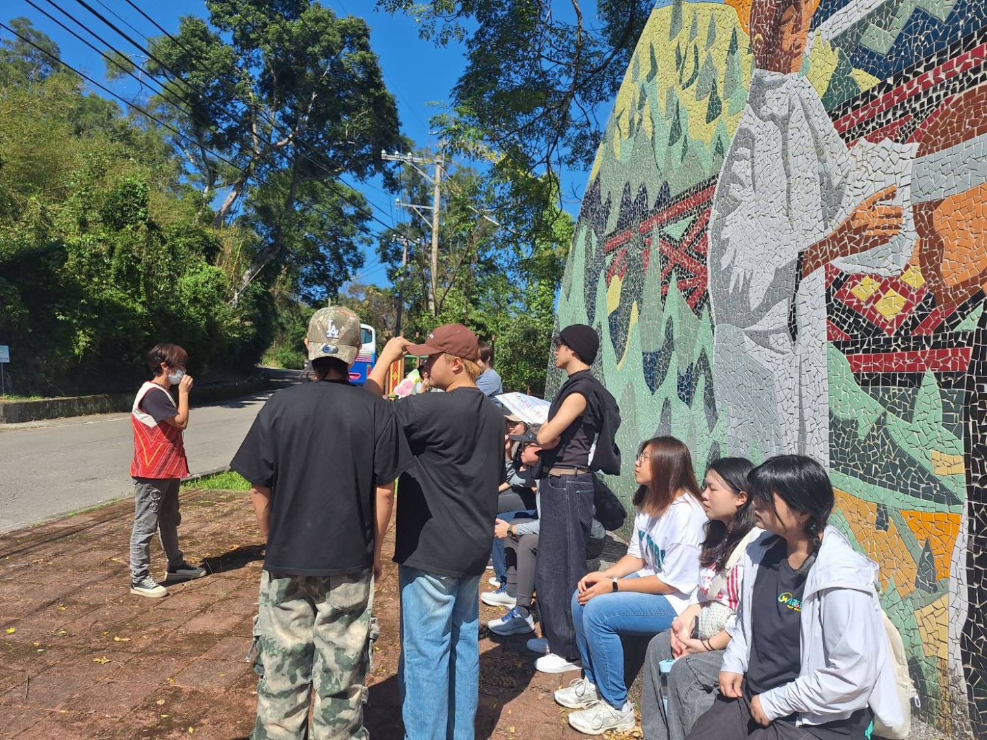 活動首站來到角板山,由李永松老師帶領同學了解枕頭山戰役的歷史事件;接著再到樂信·瓦旦紀念公園,了解樂信·瓦旦的生平事蹟與歷史貢獻。透過導覽的介紹,大家不僅理解到泰雅族在威權統治下的人權故事,也從原住民族的視角,思考轉型正義的多元面貌。學生們普遍表示,這樣的學習方式比起課本內容更為真實,能直接感受當地人對歷史的記憶與情感,對原住民族的歷史經驗有了更具體的理解。