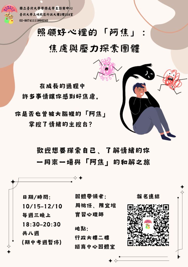 【成長團體】焦慮與壓力探索團體:照顧好心裡的「阿焦」