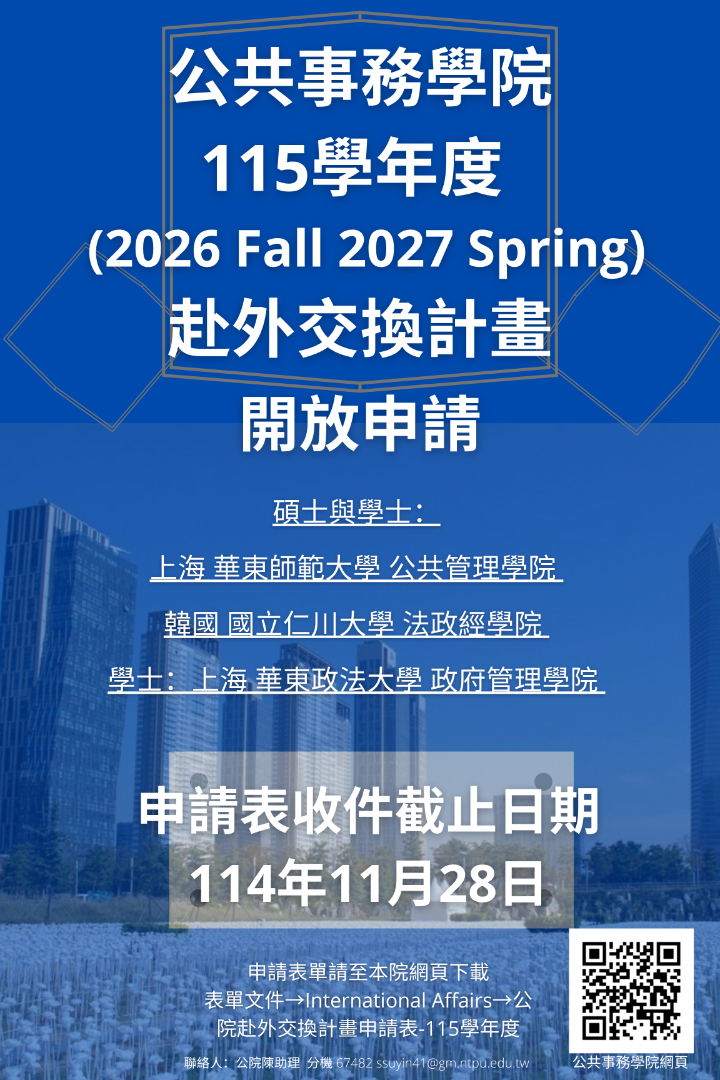 本院網頁→表單文件→International Affairs→公共事務學院赴外交換計畫申請表-115學年度.