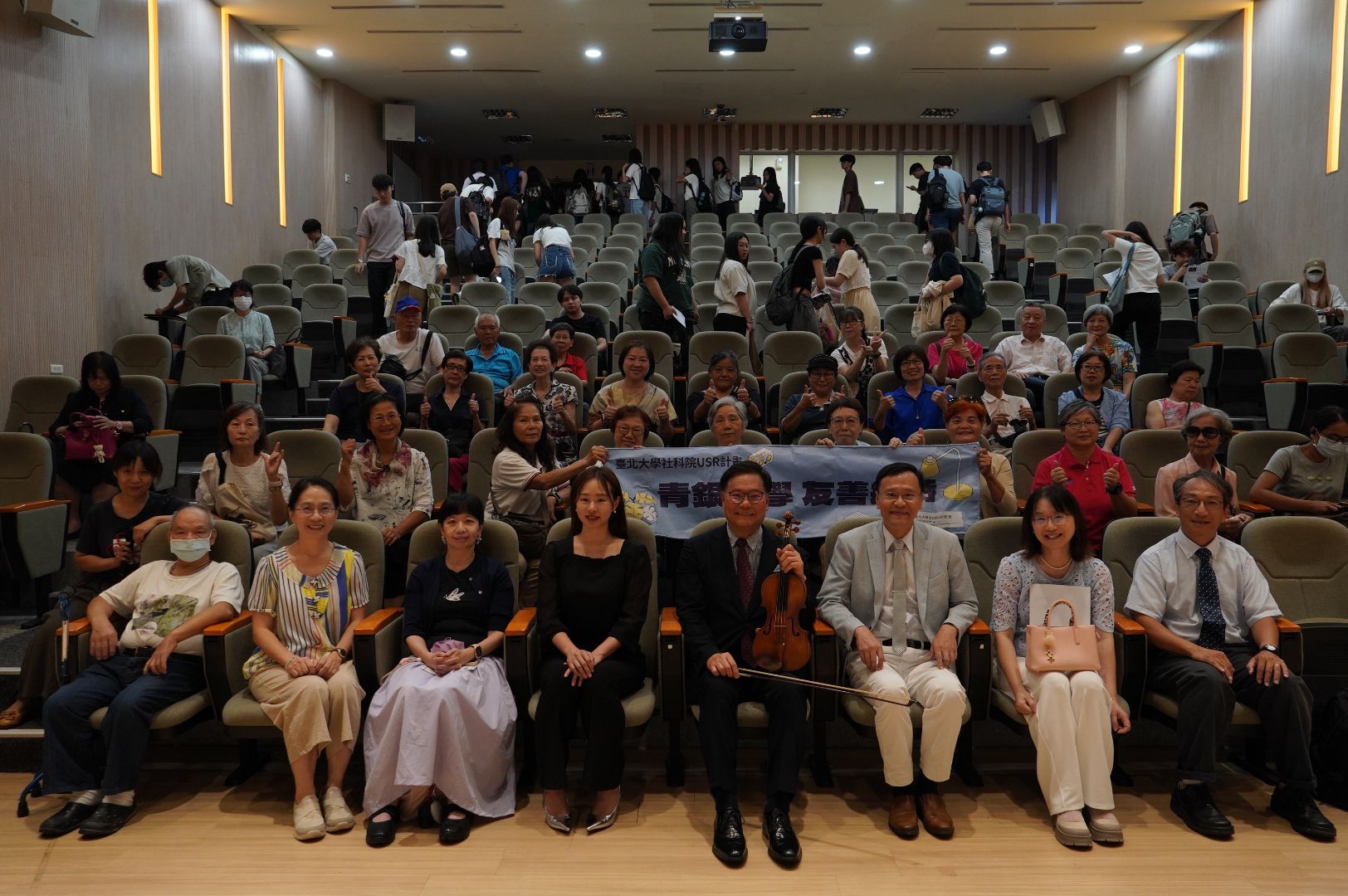 為促進青銀共融與落實大學社會責任,社科院USR計畫與通識中心林子晴老師持續合作,於10月7日邀請土城區頂欣社區發展協會28位社區長輩,與65位通識課同學在公院119會議廳中,一同聆賞小提琴家蘇顯達教授的音樂講座及獨奏會,這也是USR計畫所辦理的第47場校園友善接待。在這場名為《你的態度決定音樂的高度》的講座與音樂會中,由國立臺北藝術大學終身特聘教授蘇顯達分享他數十年的音樂歷程與人生體悟,並於現場帶來精彩演奏。