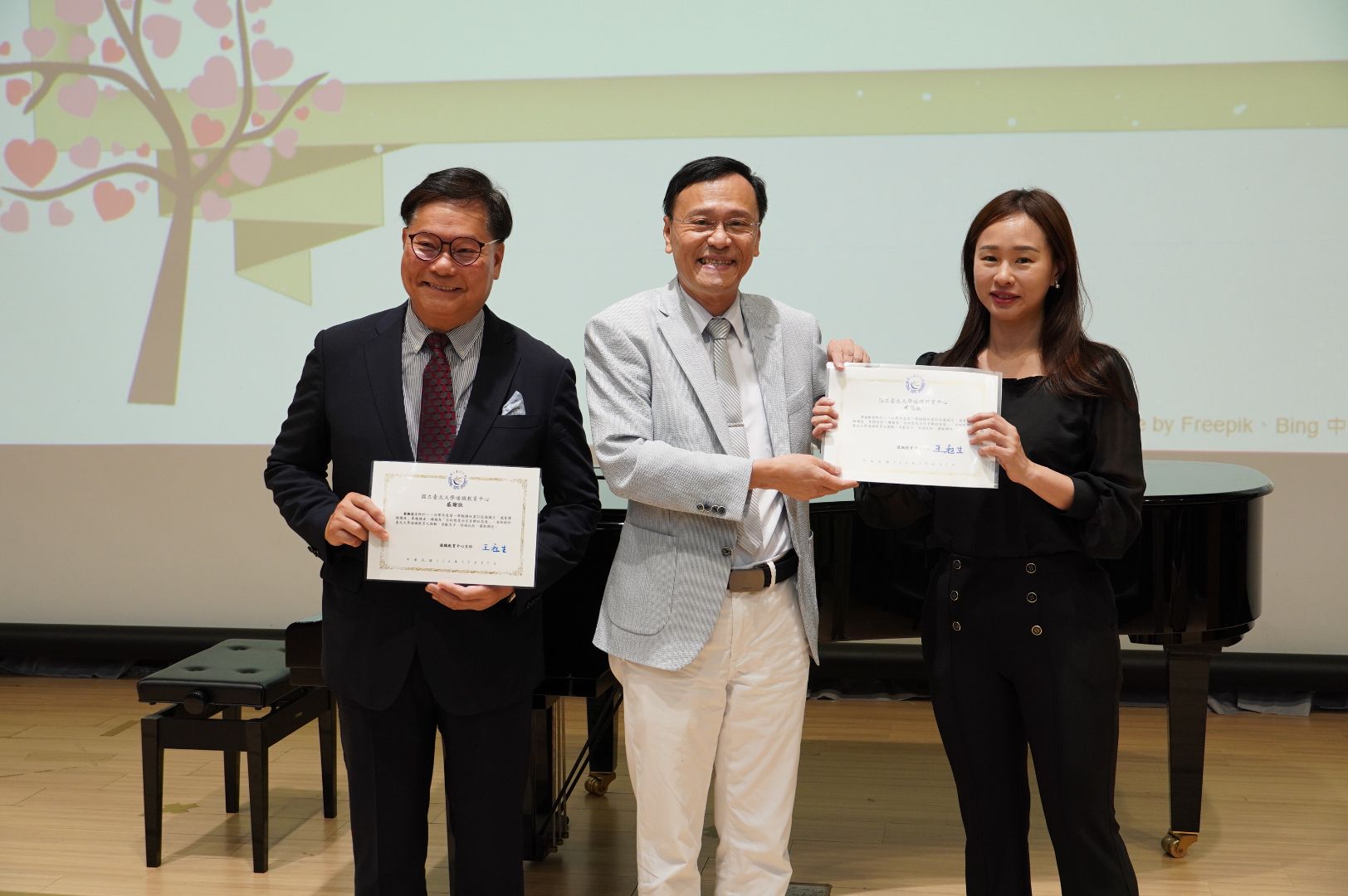 他也回憶20多年前首次進入台大安寧病房演出,一位病友握著他的手感激地說:「謝謝你在我的生命盡頭帶來美好的音樂。」這句簡單的話讓他深受震撼,體會到原來施比受真的更有福氣,並告訴在場所有學生與長者,現在所做的每件善事,都會成為未來人生能量的伏筆。